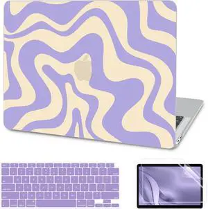 AKIT Compatible with MacBook Air 13 Inch Case M1 2022 2021 2020 2019 2018 A2337 A2179 A1932, Pattern Hard Shell Laptop Case+Screen Protector+Keyboard Cover for Mac Book Air 13.3 Inch, Violet Wave