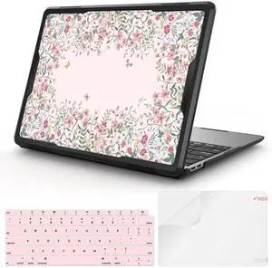 iLeadon Compatible with MacBook Air 13 Case, 2020-2018 Release A2337 A2179 A1932, Anti-Cracking Heavy Duty Protective Hard Shell MacBook Air M1 13 inch Case Pink with TPU Bumper (Floral)