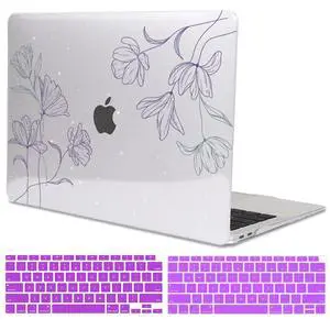 LCMOCICO for MacBook Air 13 inch Case 2021 2020 2019 2018 Model M1 A2337 A2179 A1932 with Retina Display & Touch ID, Shiny Pattern Plastic Hard Shell Case Keyboard Skin Cover, Purple Line Flower