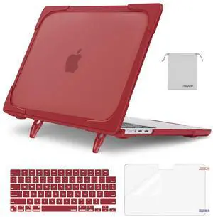 MOSISO Compatible with MacBook Air 13 inch Case 2025 2024 2023 2022 M4 A3240 M3 A3113 M2 A2681, Heavy Duty Hard Case with Fold Kickstand&Keyboard Cover&Screen Film&Pouch for MacBook Air 13.6 Case, Red