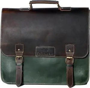 16 Inch Leather Laptop briefcases Messenger bags best office Satchel bag for Men and Women (Dark Brown)