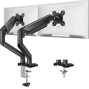 Dual Monitor Desk Mount Full Motion Gas Spring Arms, Fits 13 to 32 Inch Screens, Holds 17.6 lbs per Arm, Dual Monitor Stand, VESA Mount, C-Clamp & Grommet Base