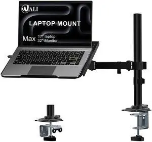 Monitor Mount and Laptop Stand for Desk, Adjustable Height Monitor Arm Fit up to 32 inch Screen and 17 inch Laptop, Hold up to 22lbs Weight, C-Clamp and Grommet