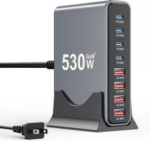 530W USB C Charger Block 8-Port USB C Charging Station GaN IV Travel Essentials Multiple Port Charging Station 100W Laptop Fast Charger Adapter for MacBook Pro/Air iPad iPhone Galaxy