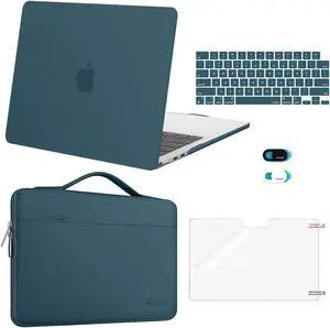 MOSISO Compatible with MacBook Air 13 inch Case 2025 2024 2023 2022 M4 A3240 M3 A3113 M2 A2681, Hard Shell&Sleeve Bag&Keyboard Skin&Webcam Cover&Screen Film for MacBook Air 13.6 inch, Teal Green