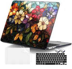 CISSOOK for MacBook Air 13 inch M2 M3 M4 Case 2022 2023 2024 2025 Release, Flower Hard Shell Cases with Keyboard Cover OTG Adapter for MacBook Air 13.6 inch A3240 M3113 A2681