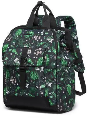 SUNNY BIRD Laptop Backpack, 15.6 Inch Laptop Work Bag, Wide Open Casual Daypack for Women, Men and Adult (FloralFoliage)
