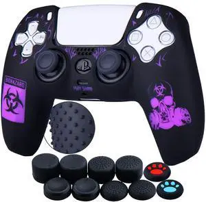 Silicone Rubber Back Dots Carving Customizing Skin Cover for PS5 Controller x 1(Radiation Red) with Pro Thumb Grips x 10 Purple