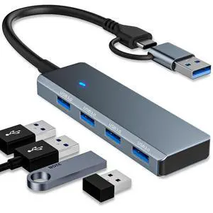 USB Hub for PS5 Pro/Slim,4 Port USB 3.0 Multiple Splitter 1 in 4 Out with 0.7FT Long Cable,5Gbps High-Speed Extender Hub with OTG & USB Adapter for PlayStation 5,PS4 Console,Disc & Digital