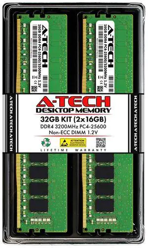 A-Tech 16GB 2x 8GB PC4-25600 Desktop DIMM DDR4 3200MHz Non-ECC Memory RAM 8G 16G