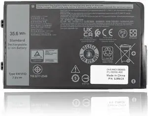 6WVHD Laptop Battery 35.6Wh 4457mAh 4-Cell 7.6V Compatible with DELL Latitude 7230 Rugged Extreme Tablet / T06H T06H001 Series FNW8F 0VDDJY VDDJY 0JM6CX JM6CX 451-BDDY