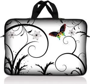 LSS 10.2 inch Laptop Sleeve Bag Carrying Case Pouch with Handle for 8" 8.9" 9" 10" 10.2" Apple Macbook, GW, Acer, Asus, Dell, Hp, Sony, Toshiba, White Butterfly Escape Floral