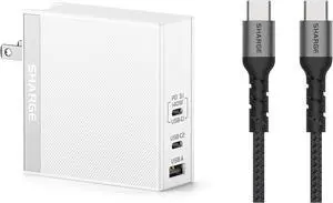 SHARGE USB C Charger for Laptops 140W GaN Fast Charger with USB C and USB A, PD3.1 Power Adapter Compatible for MacBook Chromebook Surface iPhone 17/16/15 iPad PC Tablets (Cable Not Included)