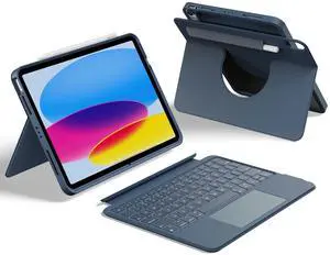 HOU 360 Rotating & Detachable Keyboard Case for iPad A16 11/10-155 Adjustable Stand, Apple Pencil/Stylus Slot, Multi-Touch Trackpad, 7- Colors Backlit, Full Protection Cover, US English Layout
