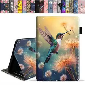 stmedazm Case for All-New Fire HD 10 & 10 Plus Tablet 10.1" (13th/11th Generation, 2023/2021 Release), Slim Stand Folio Cover with Card Slot & Auto Wake/Sleep - Hummingbird Dandelion