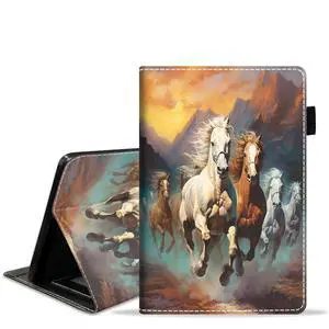 JDHJFBFJNP Case for All-New Fire HD 10/Fire HD 10 Plus Tablet 10.1" (11th Generation, 2021 Release) - PU Leather Stand Flip Cover with Card Slot & Pencil Holder, Watercolor Horse Painting Art
