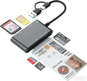 7-in-2 Smart Card & Memory Card Reader USB-C/A Military CAC/PIV Reader for Government ID SIM SD/TF/MS Pro Duo Plug & Play CCID Certified Windows/Mac/Linux Compatible Supports up to 2TB