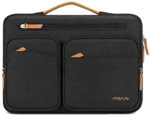 MOSISO 360 Protective Laptop Case 13.3 inch, 13-14 inch Laptop Sleeve Compatible with MacBook Air 13.6/Pro 13/Pro 14,HP Dell ASUS Lenovo,Side Open Carrying Computer Bag with 5 Front Pockets&Belt,Black