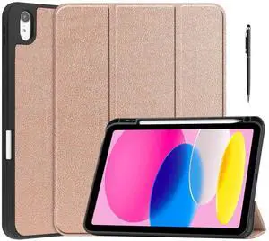 Case for iPad A16 11th Generation 11 inch 2025 / iPad 10th Generation 10.9 inch 2022, Slim Smart Stand Cover with Pencil Holder, Universal Stylus Pen Rose Gold