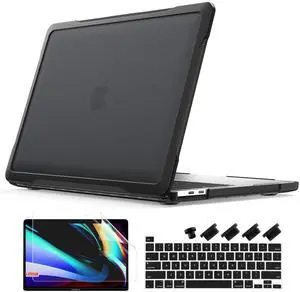 Batianda Ultimate Case for New MacBook Pro 13 inch 2022 2020 Release Model A2338 M2 M1 Chip A2251 Matte Surface Carbon Fiber Edges Shockproof Anti-Scratch Anti-Fingerprint with Keyboard Cover, Black