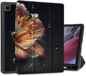 Yebiseven Case for Samsung Galaxy Tab A7 Lite 8.7 inch 2021 Released SM-T220/T225/T227, Shockproof Tablet Case with Tri-Fold Stand & S Pen Holder & Soft TPU Bumper, Water Flower