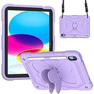Dteck iPad 10th Generation 10.9 Inch 2022 Case with Kickstand Butterfly Wings Pencil Holder, Heavy Duty Hard Rugged Protective Kids Girls Cover for iPad 10th Gen 10.9 Inch 2022,Purple