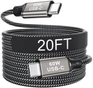 20FT USB C Cable 60W Extra Long USB C to USB C Cable Type C Charger Fast Charging Cord Compatible with iPhone 17 16 15 Pro Max Plus Galaxy Pixel iPad Pro/Air MacBook Pro/Air