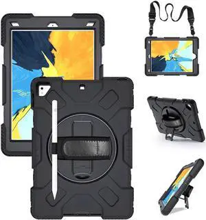 Case for iPad 6th 5th Generation 9.7 inch 2018 2017 / iPad Pro 9.7 / iPad Air 2 Protective Cover with 360° Rotating Stand, Hand/Shoulder Strap, Pencil Holder