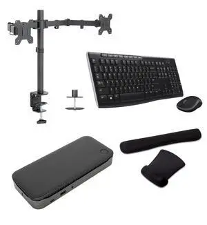 Targus USB-C Universal/Hybrid Quad 4K 100W Dock Bundled with Desk Mount Dual Monitor Stand, MK270 Wireless Keyboard & Mouse combo and Gel Mouse & Wrist Pad