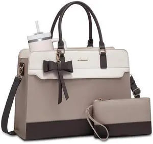 LOVEVOOK 17.3 inch Laptop Tote Bag for Women - Waterproof Work Bag for Women & Vintage Computer Bag with Wristlet, Brown