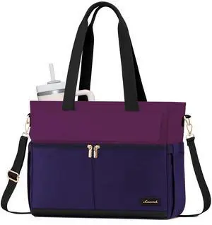 LOVEVOOK Laptop Bag for Women 15.6 Inch Canvas Laptop Large Capacity Work Bags Mutiple Pockets Teacher Bag Water Resistant Computer Bags for Business Travel Nurse, Dark Purple-Black
