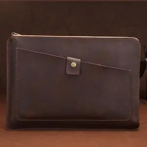 Universal Genuine Leather Business Laptop Tablet Zipper Bag For 13.3 inch and Below (Brown)