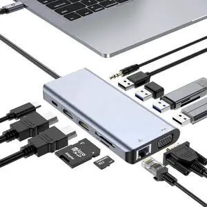 Features: - Three HDMI ports support video output simultaneously: one HDMI port can support the resolution up to 4K@60Hz and the other two support up to 2K@60Hz. - Extend/Mirror video modes are available for multiple tasks. - 130W Power Supply delivers maximum 100W power upstream to charge your laptop. - A...
