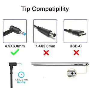 45W 19.5V 2.31A 741727-001 L25296-002/001 Laptop Charger Fit for HP 740015-002 L25296-003 213349-009 740015-001 Pavilion 13 14 15 Envy X360 15 Notebook PC Series Blue Tip Adapter Power Cord