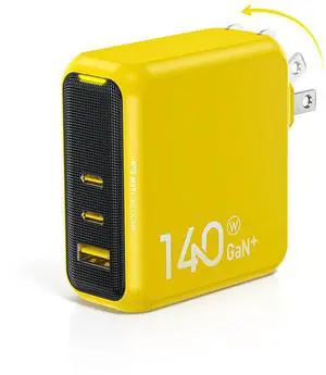 AOHI Magcube 140W USB C Charger PD3.1 3-Port GaN+ Laptop Wall Charger 100W Fast Charging Power Adapter Foldable Plug for MacBook Pro 16'', Dell XPS, iPad Pro, Galaxy, iPhone 17 Pro, Chromebook, Yellow