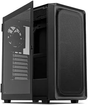 EC2 Black ATX Mid Tower PC Case, Type-C Ready, Supports 50 Series Graphics Cards, Tempered Glass Side Panel, up to 8 x 120mm Cooling Fans & 1 x 360mm Radiator, 1 x Pre-Installed Fan