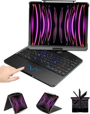 Touchpad Keyboard case for iPad Air 11 Inch M4 M3 M2 2026 2025 2024 iPad Pro 11 2022 2021 2020 2018 iPad Air 5th 4th Gen 10.9 Bluetooth Keyboard Cover with 7 Color Backlit Pen Holder Screen Protector