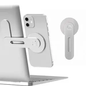 Magnetic Phone Holder for Laptop, Adjustable Phone Monitor Side Mount, Slim Portable Foldable Computer Expansion Bracket, Silver