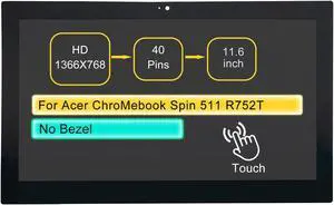 Screen Replacement Digitizer Assembly for Acer ChroMebook Spin 511 R752T-C3M5 11.6" LCD On-Cell Touch Display Panel 40 pin HD 1366 * 768 with Bezel