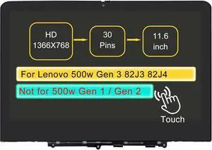 Screen Replacement Digitizer Assembly for Lenovo 500w Gen 3 82J3 82J3000GUS 82J3000LSS (Not for Lenovo 500w Gen 1 / Gen 2) 11.6" LCD On-Cell Touch Display Panel 30 pin HD 1366 * 768 with Bezel