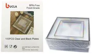 100PCS PLASTIC PLATES 7AES11CB-100 COMPATIBLE REPLACEMENT SPARE PART FOR BUCLA 6IN DISPOSABLE SQUARE CLEAR BLACK