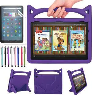 Case for Amazon Fire Max 11 (13th Generation, 2023 Released) 11" Tablet - Lightweight Shockproof Kickstand Kids Cover with Handle Stand + 1 Stylus and 1 Screen Protector for Fire Max 11 inch (Purple)