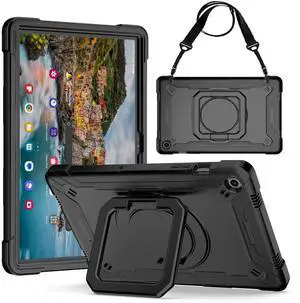 Galaxy Tab A11+ / A9+ Case 11" - Full Body Rugged Protective Cover with Rotating Grip Magic Stand and Shoulder Strap Case for Samsung Galaxy Tab A11+ Plus 2025 / A9+ Plus 11 Inch Tablet - Black