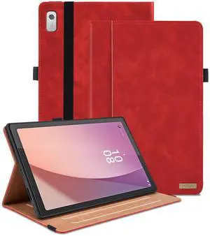 Case for Lenovo Tab M9 9.0 inch 2023 (TB-310FU) / Nook 9" Lenovo Tablet 2024, Multi-Angle Viewing Smart Cover with Pocket, Business PU Leather Flip Stand Cover-Red