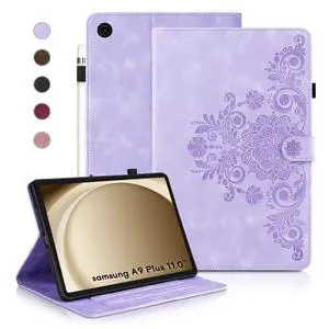 Case for Galaxy Tab A9+ Case 11 Inch, Retro Samsung Galaxy Tab A9 Plus Cover SM-X210/215 with Carved Flap, Magnetic Buckles Design, Stand Function Purple