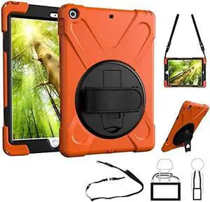 iPad Air 1st Genearton Case for Kids 2013 | iPad Air First Generation Case Rugged Shockproof | Three Layer Durable Case with Stand Hand Shoulder Strap for iPad Air 1 A1474 A1475 A1476 Orange