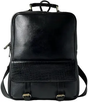 Genuine Leather Luxury Backpack Multi-functional Elegant Daypack Office Travel Leisure 15.6" Laptop Bag (Black)