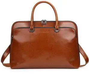 Genuine Leather laptop Briefcase: Messenger shoulder bag14 15inch men case women work satchel designer handbag