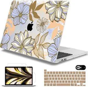 Mektron Designed for 2025/2024/2023 MacBook Air 15 INCH M4 A3241 /M3 A3114 /M2 A2941 Case, Printed Plastic Hard Shell Cover with 15.3" Liquid Retina Display Touch ID, Golden Dahlia Flowers