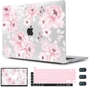 CISSOOK Compatible with MacBook Pro 13 inch Case M2 M1 Chip 2025-2016 Release A2338 A2251 A2289 A2159 A1989 A1706 Model with Touch Bar, Plastic Hard Shell Case +Keyboard Cover, Cute Pink Flower